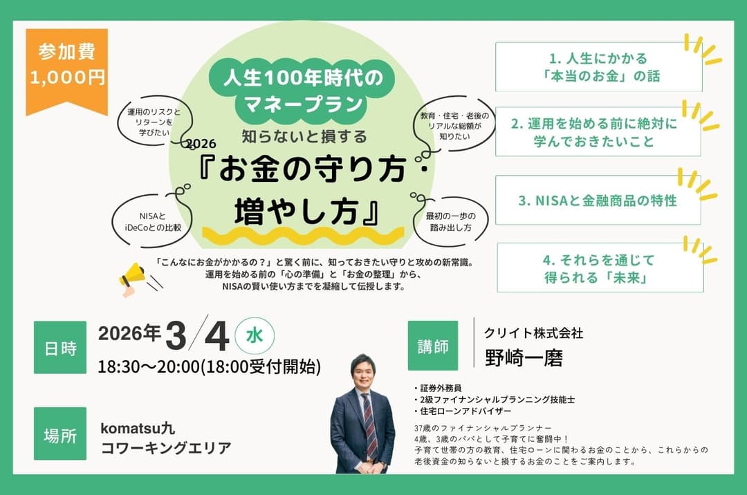 3/4(水) 人生100年時代のマネープラン 知らないと損する!「お金の守り方、増やし方」